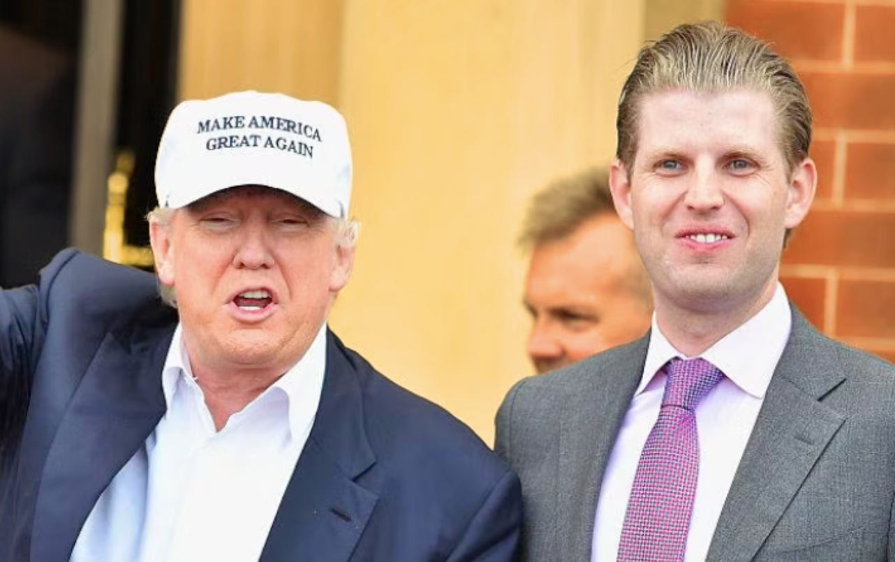 Trump & Eric Are TOASTThe Big Apple cracks down on the Big Fraudster and his criminal offspringDash DobrofskyOct 23, 2023∙ Paid19261ShareOctober 23, 2023Not only did Trump get smacked with a devastating update in New York over the weekend, but his brain-dead son Eric got hit with the worst news of his life, as well.This post is for paid subscribersSubscribeAlready a paid subscriber? Sign inPreviousNext