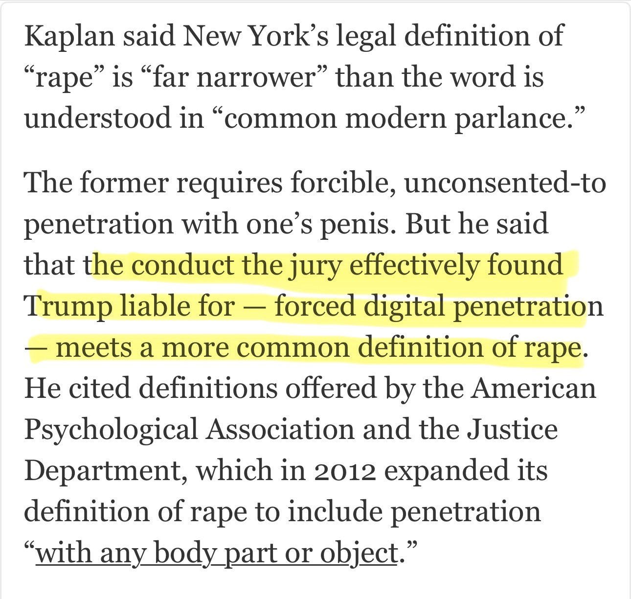 “The conduct the jury effectively found Trump liable for — forced digital penetration — meets a more common definition of rape.”