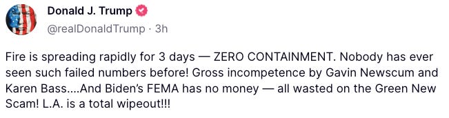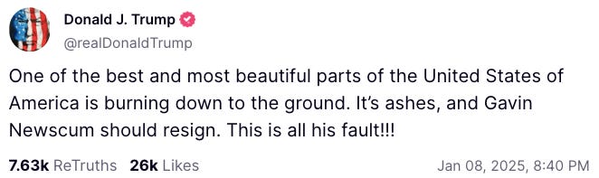 Instead of showing leadership, Trump continued to rail against Newsom through the morning and insulted the entire LA Fire Department for not putting out the biggest fire in our city’s history.
